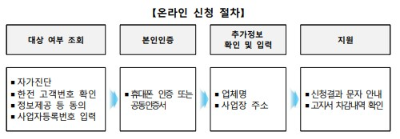 신청은 온라인 신청을 원칙으로 합니다. 포털사이트에서 '소상공인 전기요금 특별지원'으로 검색하셔도 되고 주소창에 '소상공인 전기요금 특별지원. kr'을 입력하시면 접속하실 수 있습니다. 전기요금 지원절차는 신청 후 검증이 되며 대상을 통보하고 요금을 지원하게 됩니다.